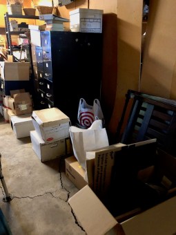 Since her death, her archive has been moved to my garage (see photo) – 13 stuffed file drawers and 22 boxes, some of which appeared from storage that I’d never seen. So now I’m doing what should have happened the first go round, I’m throwing things away. Sigh.
